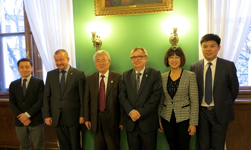 11月13日至16日,校党委书记韩震率团访问波兰、拉脱维亚,与雅盖隆大学、西里西亚大学、拉脱维亚语言中心、拉脱维亚大学开展交流、签署合作协议,期间还拜会了中国驻波兰大使及中国驻拉脱维亚大使。