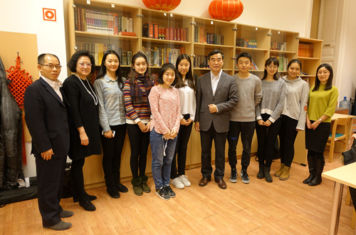会议结束后,闫国华一行看望了我校在匈牙利留学的学生,并与他们进行了座谈。闫国华了解了学生们的学习生活情况,鼓励大家在学习同时多参与社会活动,深入了解和体验匈牙利当地文化,积极参加罗兰大学孔子学院组织的各种活动。