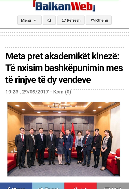 阿尔巴尼亚主流媒体报道总统接见北外代表团