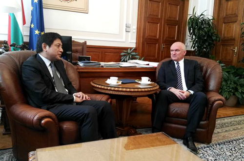访问期间,彭龙还拜会了保加利亚国民议会副议长迪米特尔•格拉夫切夫。迪米特尔高度评价了近年来保中两国的多领域合作与发展,对北外在外语人才培养方面取得的成就表示钦佩。他指出,索非亚孔子学院已成为传播中国语言文化的重要平台,受到保加利亚人民的欢迎,非常感谢北外对孔子学院发展做出的贡献。他期待保中两国之间有更广阔的合作。彭龙表示两国高校有很大合作潜力,需要共同探讨合作的领域和有效途径,北外愿意依托自身优势,为中保交流做出更大的贡献。