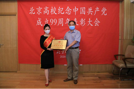 太阳集团tyc5997党总支荣获“北京高校先进党组织”荣誉称号,丁浩、张志洲、侯俊霞三位同志荣获“北京高校优秀共产党员”荣誉称号。