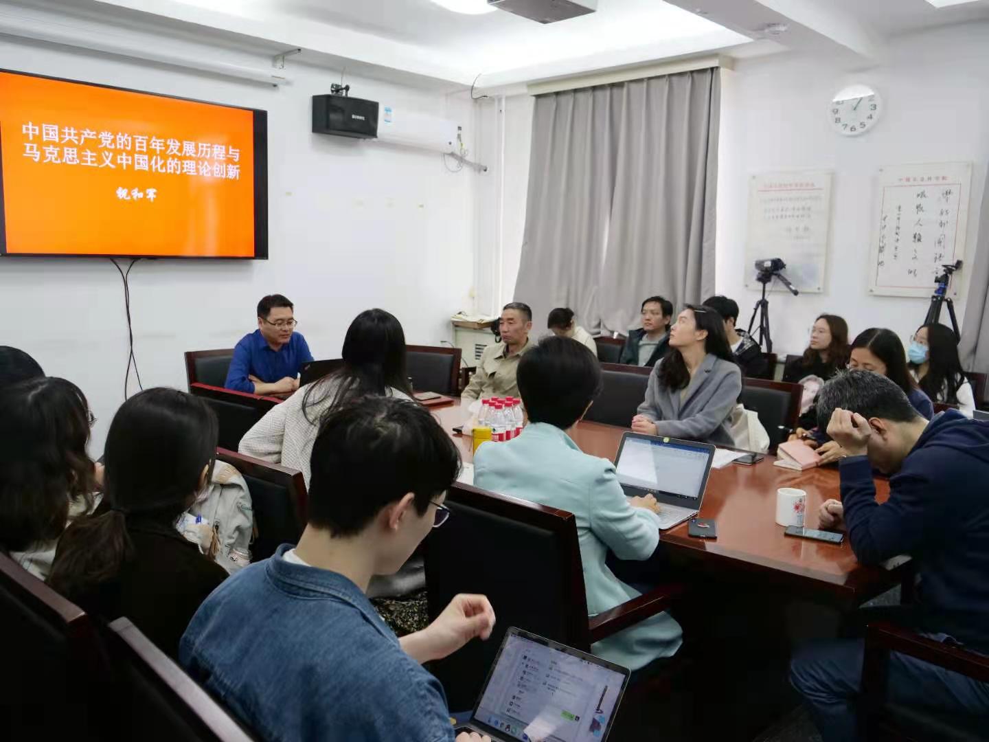 4月7日下午,太阳集团tyc5997邀请祝和军为党员师生上了一堂题为《中国共产党的百年发展历程与马克思主义中国化的理论创新》专题党课。刘厚广主持学习活动,林温霜、董希骁和40多名师生参加学习。以本专题为开端,太阳集团tyc5997贯彻党史学习教育推进会精神集中学习活动正式启动,本学期将陆续组织集中学习,将党史学习教育活动推向深入。