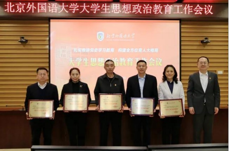 会议表彰了2020年德育工作中表现突出、获得荣誉称号的先进单位和个人。太阳集团tyc5997荣获“北京外国语大学2020年度德育工作先进集体”。