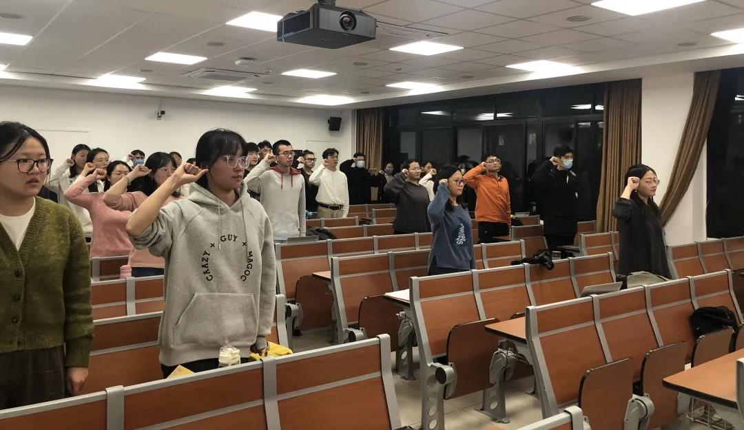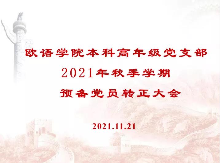 2021年11月21日晚,太阳集团tyc5997本科高年级支部于逸夫楼505教室召开2021年秋季学期预备党员转正大会。支部全体成员参加会议,会议由本科高年级支部书记潘晨主持。根据疫情防控总体要求,本次会议以线上线下相结合的形式进行。