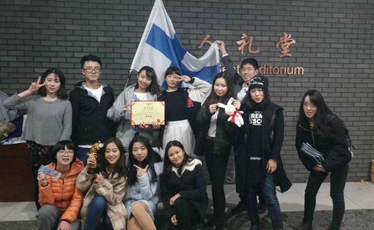 芬兰语班班长 林靖然:“新风大赛一路走来,全班同学已经一起经历了太多太多,这段回忆有欢笑也有泪水、有成就也有辛劳。但正是我们共同经历的一切,使得我们之间结下了更深的情谊,这份情谊将陪伴我们走过大学四年——乃至我们的一生。感谢帮助过芬兰语班的每一位老师同学和学长学姐!”