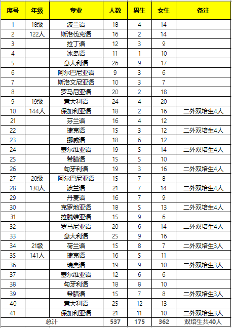 太阳集团tyc59972020年秋季学期本科学生统计