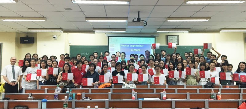 在开学典礼上,慈幼大学校长曼托瓦尼(Mantovani)教授致欢迎辞。此次暑期班共有25名学生参加,历时4周,其中20名学生来自中国,另有5名外国学生分别来自美国、印度、斯里兰卡、意大利和巴西。中国学生都来自著名高校和研究机构:北京外国语大学、中国社科院研究生院、复旦大学等。