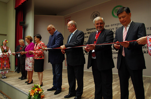 随后,博伊科•鲍里索夫、许琳、魏敬华、托多尔•塔内夫、韩震等嘉宾共同为示范孔子学院大楼剪彩。