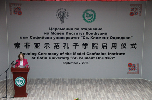 保加利亚总统教科、公共社会秘书鲁米亚娜•科拉洛娃(Rumyana Kolarova)宣读了保加利亚总统罗森•普列夫内利耶夫(Rosen Plevneliev)的贺信。罗森•普列夫内利耶夫在贺信中指出,索非亚示范孔子学院的启用是保中双方成功合作的成果,孔子学院通过汉语教学为传播中国文化作出了显著贡献,也为保中友好合作关系的发展发挥了积极作用,已经成为保加利亚重要的教育和文化中心。