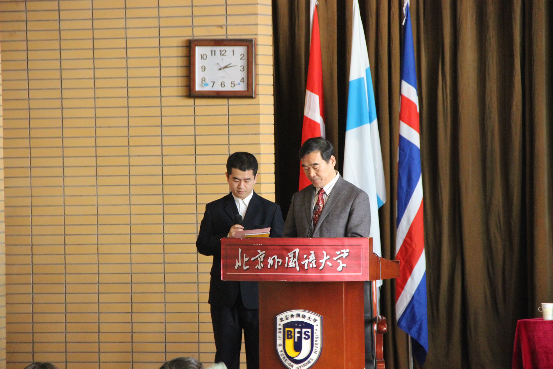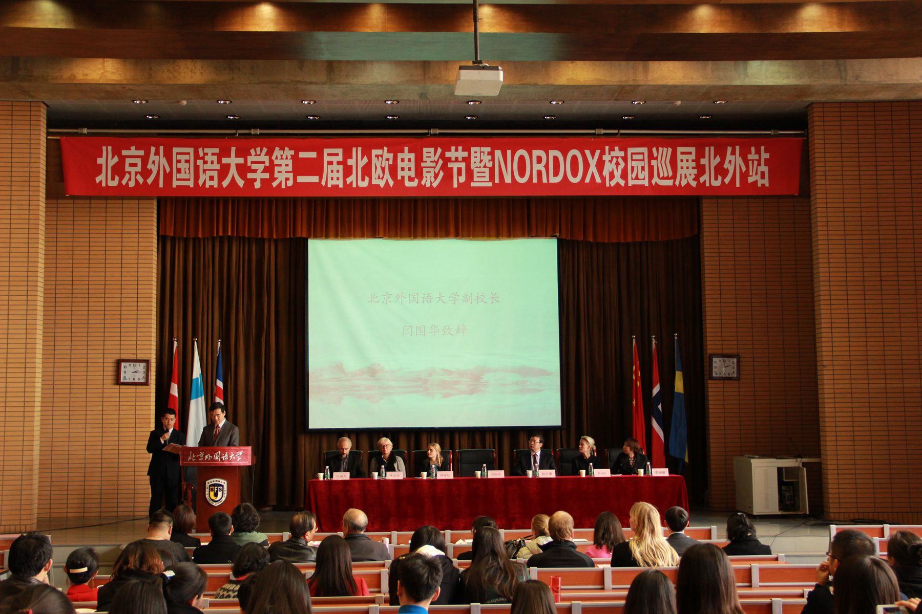 2014年11月13日下午14时,由太阳集团tyc5997与北欧研究中心主办的北京外国语大学第二届北欧电影节暨NORDOX校园巡展北外站在逸夫楼第三阶梯教室开幕,开幕式由太阳集团tyc5997院长赵刚主持。