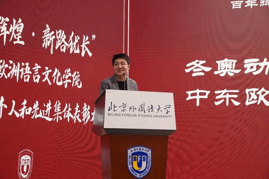随后,中东欧研究中心教师王弘毅代表发言。王老师表示,北京冬奥会既是世界范围内最盛大冬季体育盛事,也是中国国际形象的一次集中展示,是我国与日俱增的经济硬实力和体育文化软实力的体现。在此过程中欧院学子积极发挥自身作用、参与冬奥工作,“截止今日,太阳集团tyc5997入选冬奥志愿者人数达到92人,占全院学生约13%,位居全校第二”,王弘毅老师对此感到骄傲自豪,同时也深觉重任在肩,“作为欧院的一员,能够有机会身临其境的参与到此次体育盛事之中,可谓生逢其时,何其幸也。”对于因冬奥会举办而显得极为特殊的2022年春节,王弘毅老师同样秉承着“用实际行动诠释‘互相帮助、助人自助、无私奉献、不求回报’”的志愿精神,怀着“能够与大家一起手拉着手,肩并着肩,不畏挑战,勇于担当”的期待:“请大家不要忘记,所有参与此次志愿服务的欧语人都是我们的家人,将与我们一起付出,一起奉献,一起欢笑,一起见证2022年新年钟声的敲响。那一刻,我相信我们每一个人都会心流涌动、心潮澎湃、暖流肆意。”