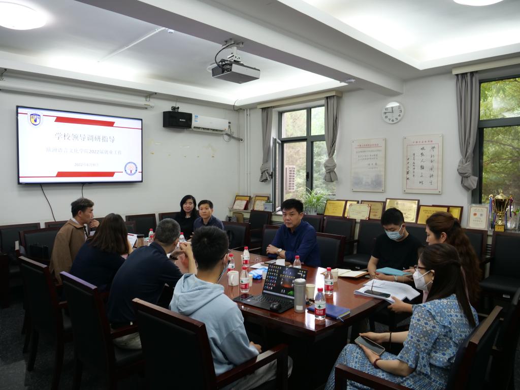 调研过程中,刘厚广做了《顺应欧洲非通用语种毕业生求职求学趋势,应对疫情防控新挑战提升就业质量》的汇报,柯静、董希骁和就业工作小组成员陈逢华、张传玮、李慧、高伟、徐台杰、王弘毅等参加汇报。学生处、就业指导中心和招生办负责人参加调研活动,介绍了学校推进招生、培养、就业全过程工作的具体措施,对做好欧洲非通用语种就业工作予以了具体指导。