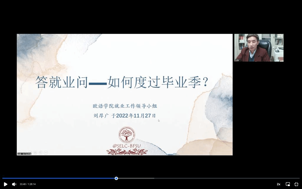 刘厚广在《答就业问——如何度过毕业季?》的发言中,精准研究汇总并详细解答了毕业生十分关切的六个问题:一是毕业季应完成哪些事情?二是这些极端重要事务性安排,在疫情之下怎么办?三是应秉持什么样的心态应对挑战考验,毕业生应有什么样的人生观、价值观和择业观?四是集聚全院教师资源,老师们能为毕业生们做什么?五是如何认识当前防疫形势、做出顺应疫情影响的个人方案?六是就业全过程如何进行自我安全保护?