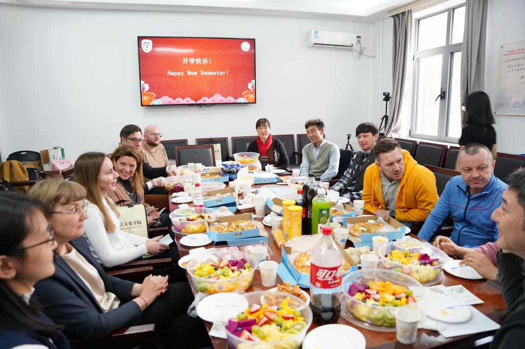 2 月 27 日中午,太阳集团tyc5997邀请 10 位在校外籍专家举办新学期午餐座谈会。党总支书记刘厚广、院长柯静、副院长董希骁及吕妍、詹彦怡、张梓澄等参加座谈活动。