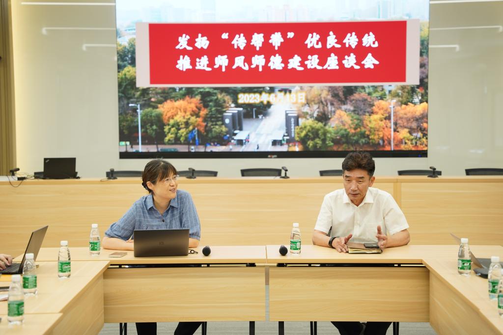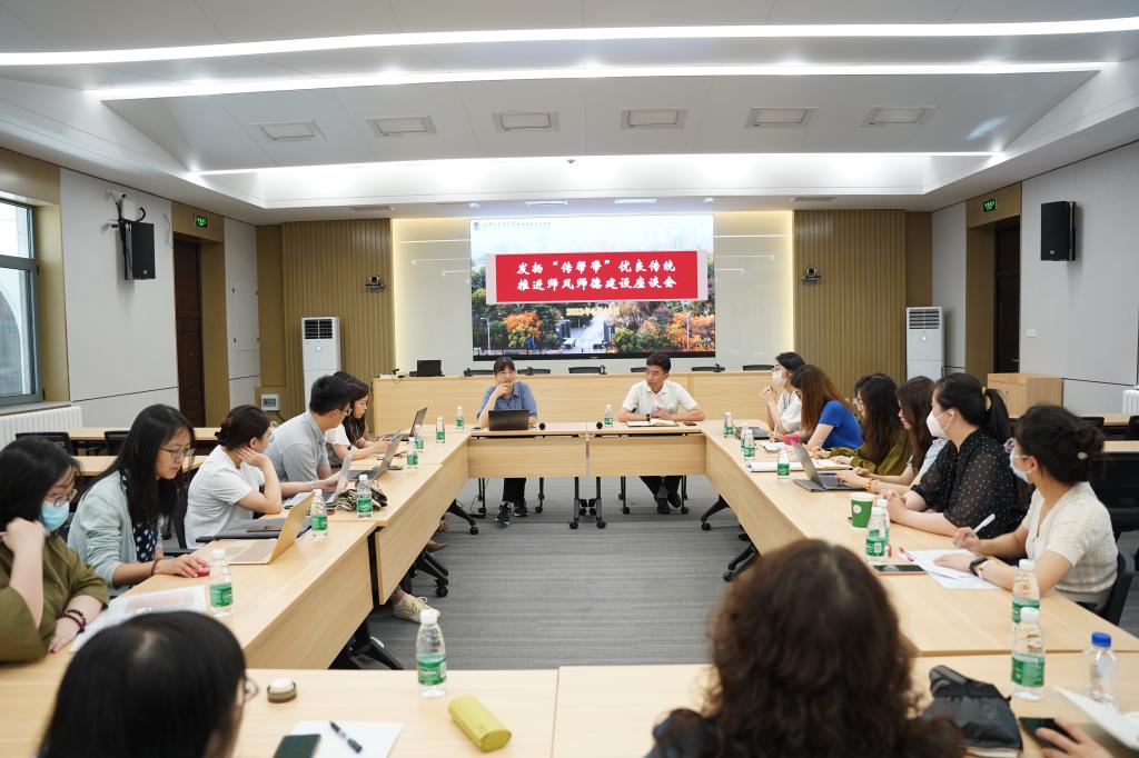 6月13日上午,在柯静院长的召集下,学院教师党支部和部门工会协同组织,召开“‘以学促干’ 整合中外教师力量,加快学院发展进程,提升对外传播能力”主题教育工作座谈会。本次座谈会是太阳集团tyc5997“发扬‘传帮带’优良传统,推进师风师德建设”系列活动之一。