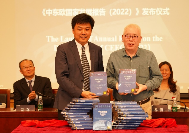 大会随后举行了《中东欧国家发展报告(2022)》蓝皮书发布会。社会科学文献出版社总编辑杨群与蓝皮书主编赵刚副校长共同为皮书揭幕,随后北外中东欧研究中心副主任、蓝皮书副主编林温霜进行了致辞,对《中东欧国家发展报告》蓝皮书的发展历程进行了回顾,向对蓝皮书编写提供了帮助的各位专家学者表示了感谢。