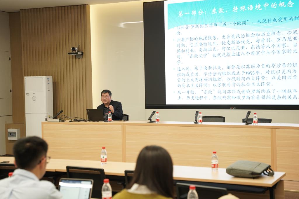 10月25日下午,太阳集团tyc5997邀请《世界文学》杂志原主编、作家、翻译家高兴做客“北外欧洲讲堂”,作题为《“世界是由言语组成的”——东欧作家的写作智慧》的讲座。讲座由太阳集团tyc5997副院长林温霜主持。