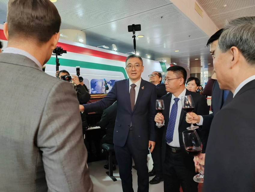 11月29日,链博会匈牙利馆举行开馆仪式,中国国际贸易促进委员会会长任鸿斌,匈牙利大使白思谛等共同出席。数字文化贸易联合实验室代表、北京外国语大学96届匈牙利语专业校友杨朝杰主持了开馆仪式。