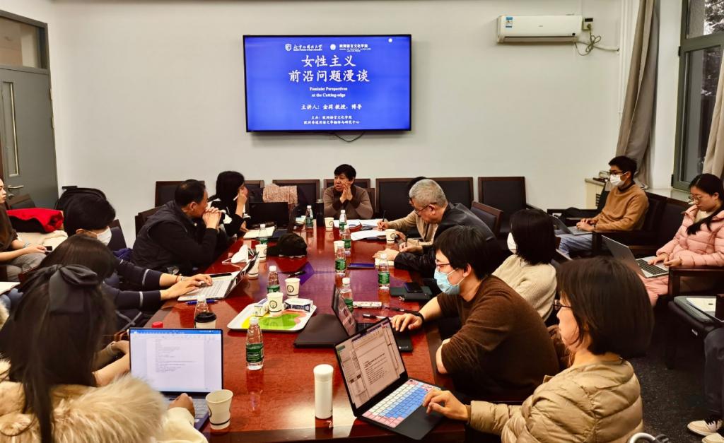 12月13日,欧洲非通用语文学翻译与研究中心邀请王佐良外国文学高等研究院院长、博士生导师金莉教授,以“女性主义前沿问题漫谈”为题举办学术讲座。文学翻译与研究中心主任赵刚教授、前中心主任张建华教授参加讲座,柯静教授主持讲座活动。