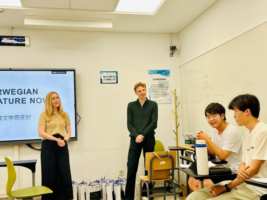 讲座以挪威儿童文学为切入点,重点讨论了挪威独具魅力的儿童文学作品,探讨了挪威儿童文学在挪威文学领域的重要性和影响力,分享了挪威儿童文学的发展与传承。在虚构与非虚构文学方面,邹雯燕女士介绍了挪威文学经典作品和现代创作,探讨了虚构与非虚构文学在传承文化、探索人性等方面的作用。挪威专业师生积极参与互动讨论,课堂气氛活跃。