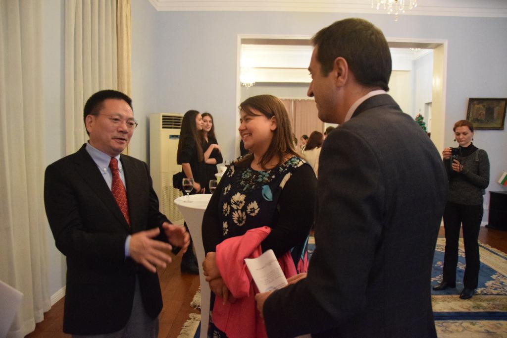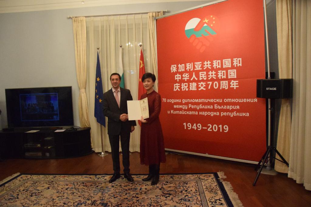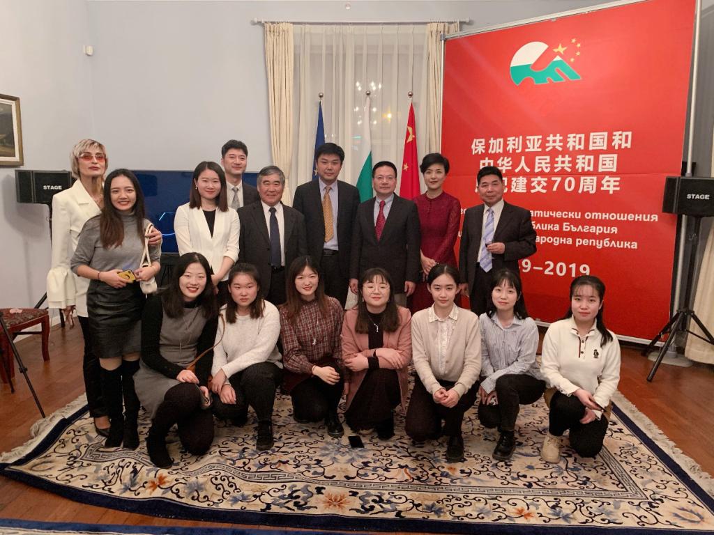 2019年12月8日,中保建交70周年庆祝活动“保加利亚语言文化推广杰出贡献奖”颁奖仪式在保加利亚驻华使馆举行。为表彰北外教师在保加利亚语言教学和文学、文化研究及推广方面的贡献,保加利亚教育科技部授予葛志强教授、林温霜教授“保加利亚语言文化推广杰出贡献奖”;保加利亚大特尔诺沃大学授予陈瑛教授“保加利亚语言文化推广杰出贡献奖”。保加利亚驻华大使格里戈尔·波罗扎诺夫为保加利亚语专业教师颁奖。应保驻华大使邀请,副校长袁军教授参加了颁奖仪式。