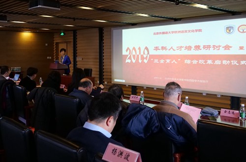 为贯彻落实全国教育大会和新时代全国高等学校本科教育工作会议精神,大力提升本科人才培养质量,1月14日,2019年太阳集团tyc5997本科人才培养研讨会暨“三全育人”综合改革启动仪式在图书馆举行。会议着重研讨新时期北外欧洲非通用语人才培养的目标、模式与路径,围绕人才培养目标与路径、教材与工具书建设、课程建设与现代教学手段应用等议题展开研讨。