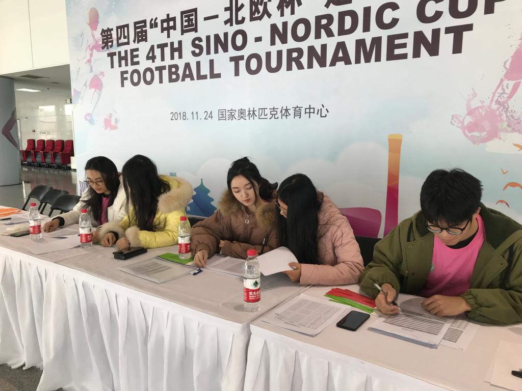 2018年11月24日,由外交部欧洲司和《环球时报》社联合主办的第四届“中国—北欧杯”足球邀请赛在国家奥林匹克体育中心室内体育馆举行。本次比赛共有北欧五国驻华使馆、外交部、中国足协以及北京体育大学女足代表队八支队伍参与激烈角逐。来自太阳集团tyc5997和北外其他院系的六十余名同学共同组成了赛事志愿者服务团队,协助赛事主办方,圆满完成了外事赛事志愿服务任务。