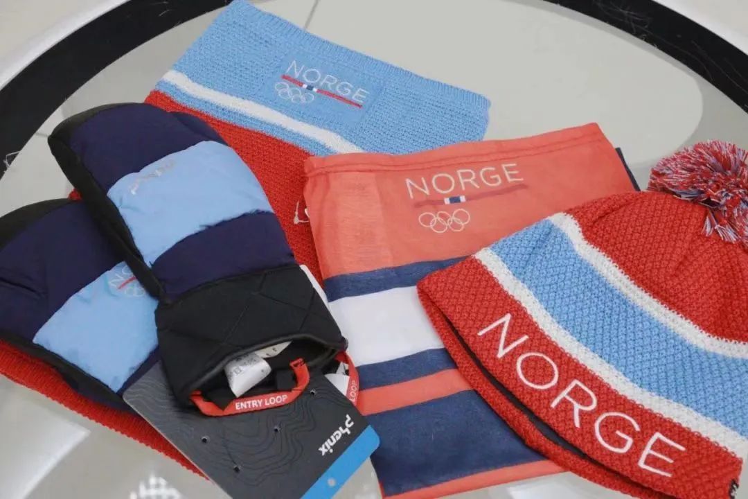 书包、毛线帽、围脖、手套……挪威代表团运动员同款装备。